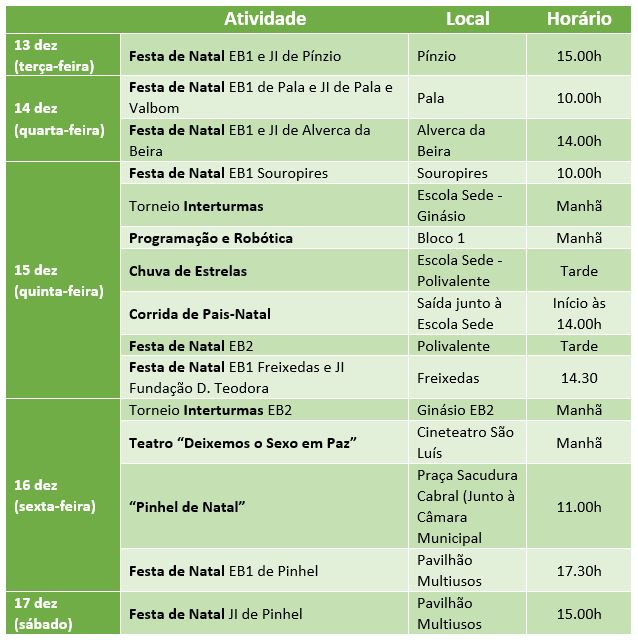 O Agrupamento de Escolas de Pinhel mostra mais uma vez o dinamismo de toda a comunidade, durante esta última semana do 1º período são várias as atividades a realizar nos diferentes ciclos de ensino.