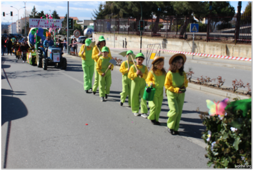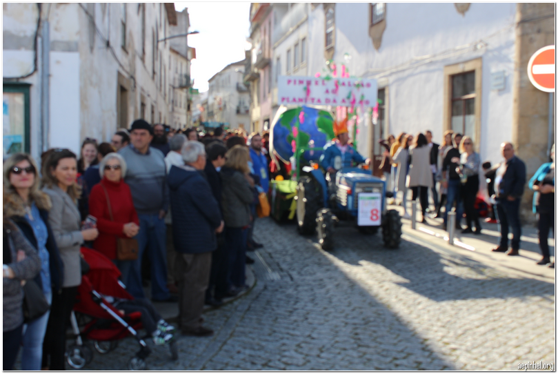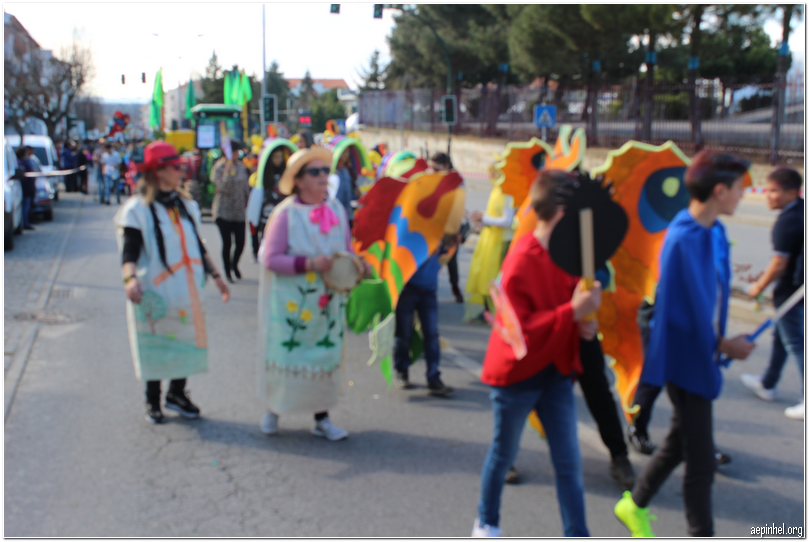 Com o tema “Preservação Ambiental ”, os foliões desfilaram durante cerca de duas horas entre o Pavilhão Multiusos e a Câmara Municipal de Pinhel. Com o sol a brilhar durante todo o dia, os trajes que coloriram as ruas da cidade de Pinhel ficaram ainda mais alegres.
