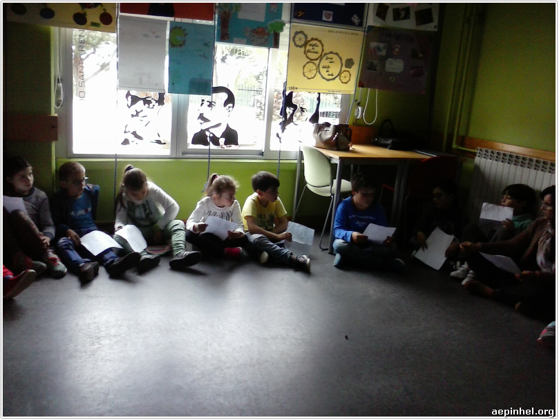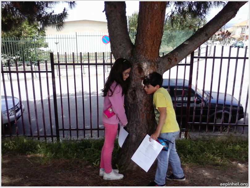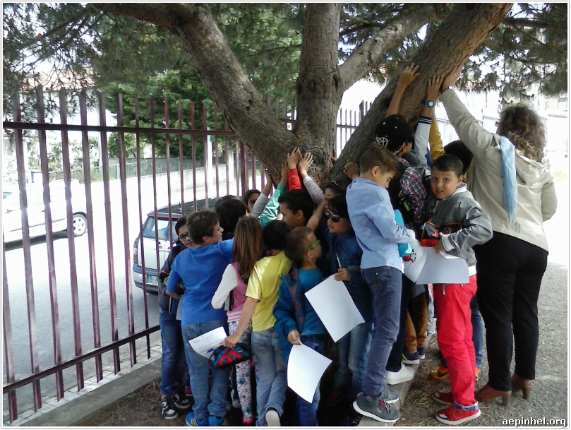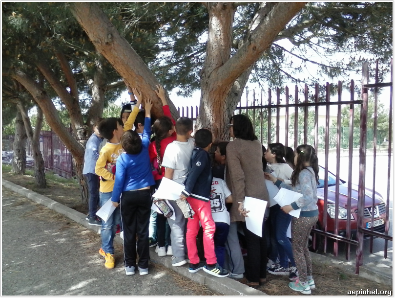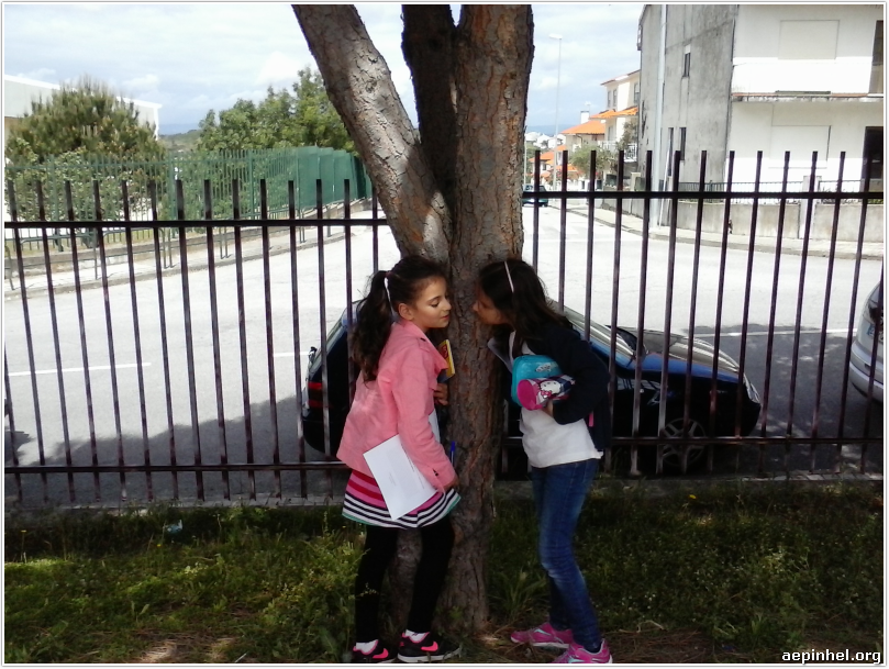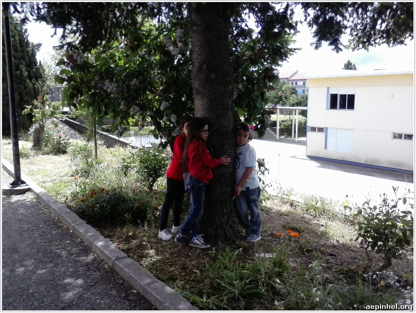 Abraçámos árvores, escutámos os seus segredos, fizemos-lhes perguntas e elaborámos uma pequena história com conceitos sobre o tema. Aprendemos que ao abraçar as árvores fortalecemos a energia intelectual, a paz e o amor. Ao tocar-lhes recebemos a sua energia que nos acalma e nos alivia o stress. Concluímos que são tantos os benefícios que as árvores nos oferecem! Cuidemos delas!