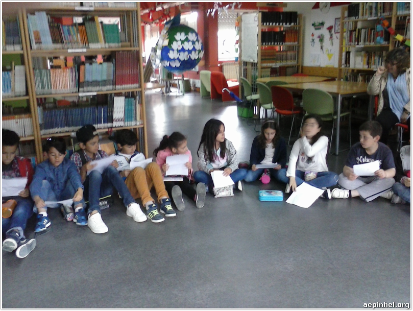 No dia 25 de maio teve lugar a última sessão de filosofia para crianças, do 3.º ano de escolaridade, atividade promovida pela Biblioteca Escolar e dinamizada pela professora Céu Ferreira. No âmbito da temática - os valores ecológicos - a sessão decorreu ao ar livre. Com as nossas mãos formámos um círculo de 17 pares de mãos e braços esticados à volta de uma árvore.