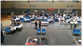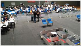 As equipas Robô Falcão e MRP participaram neste concurso de robótica, que põe à prova pequenos robôs móveis e autónomos com a missão de encontrar e apagar um incêndio, simulado por uma vela, num modelo de uma casa formado por corredores e quartos.